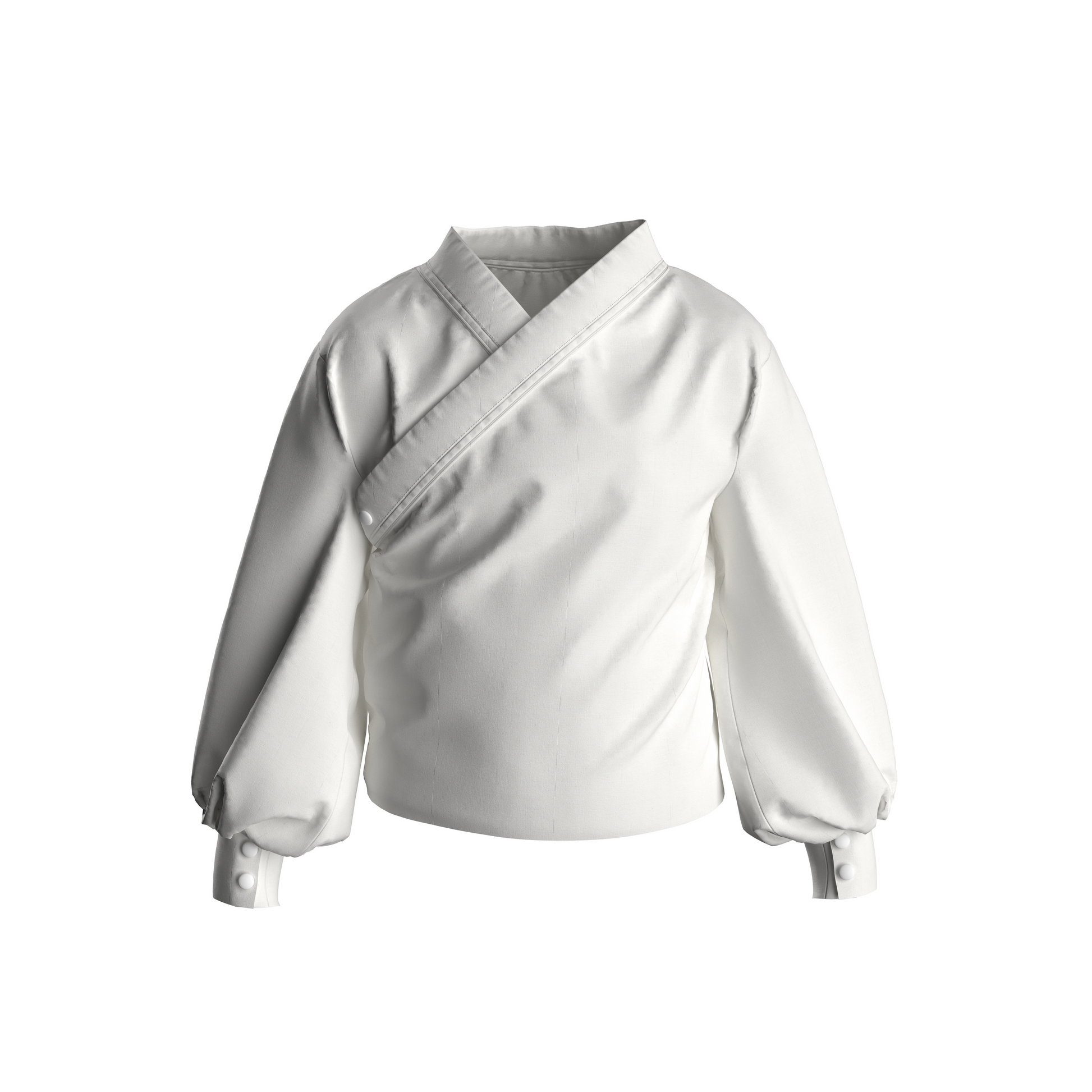 Introducing our HANBOK shirt, a nod to traditional Korean wear with a neckline that resembles the Japanese Kimono but boasts a shorter length and rounder flow, showing the richness of Korean culture. This absolute staple in Asian design focuses on silhouette, with mega sleeves that embody the flow of the Korean Hanbok.